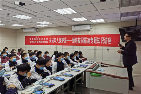 2020年10月26日下午,煥廷法律服務團隊創始人劉煥廷主任受邀走進鄭州市扶輪外國語學校,開展了一場線上與線下同時進行,教師與學生萬人聆聽的“《未成年人保護法》——預防校園霸凌”專題講座,本次講座由鄭州市管城區婦聯,鄭州市管城區南關街街道辦事處聯合舉辦,旨在增強未成年法治意識,預防校園欺凌,保護未成年健康成長。