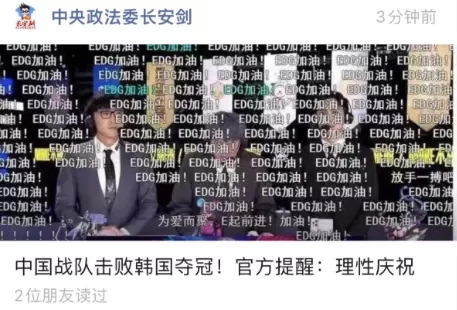 對于諸多不文明的慶祝方式,有媒體呼吁:理性慶祝EDG奪冠熱愛不是跟風更不是發瘋。英雄聯盟賽事和EDG俱樂部也呼吁大家理性慶祝EDG奪冠,遵守秩序。
